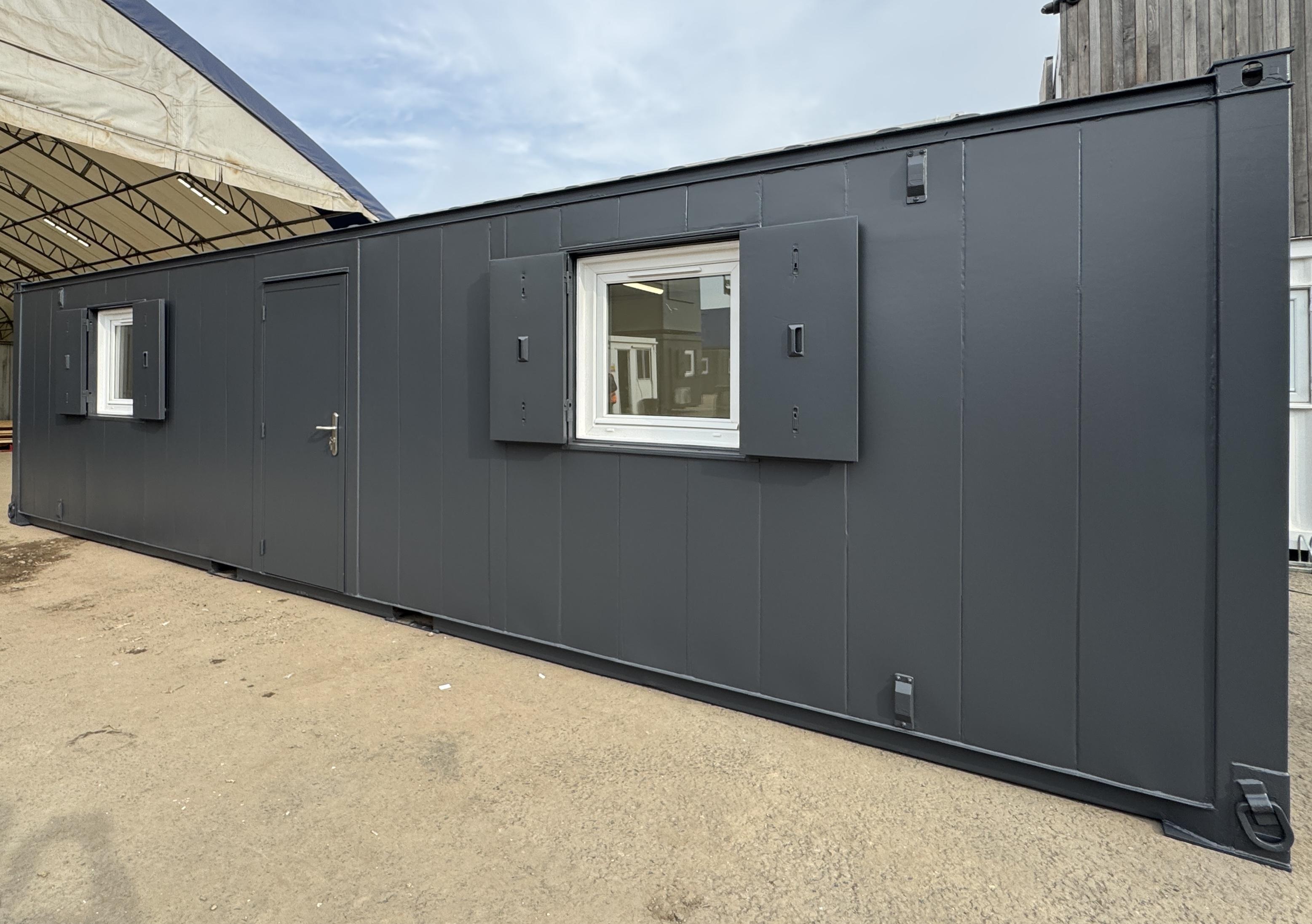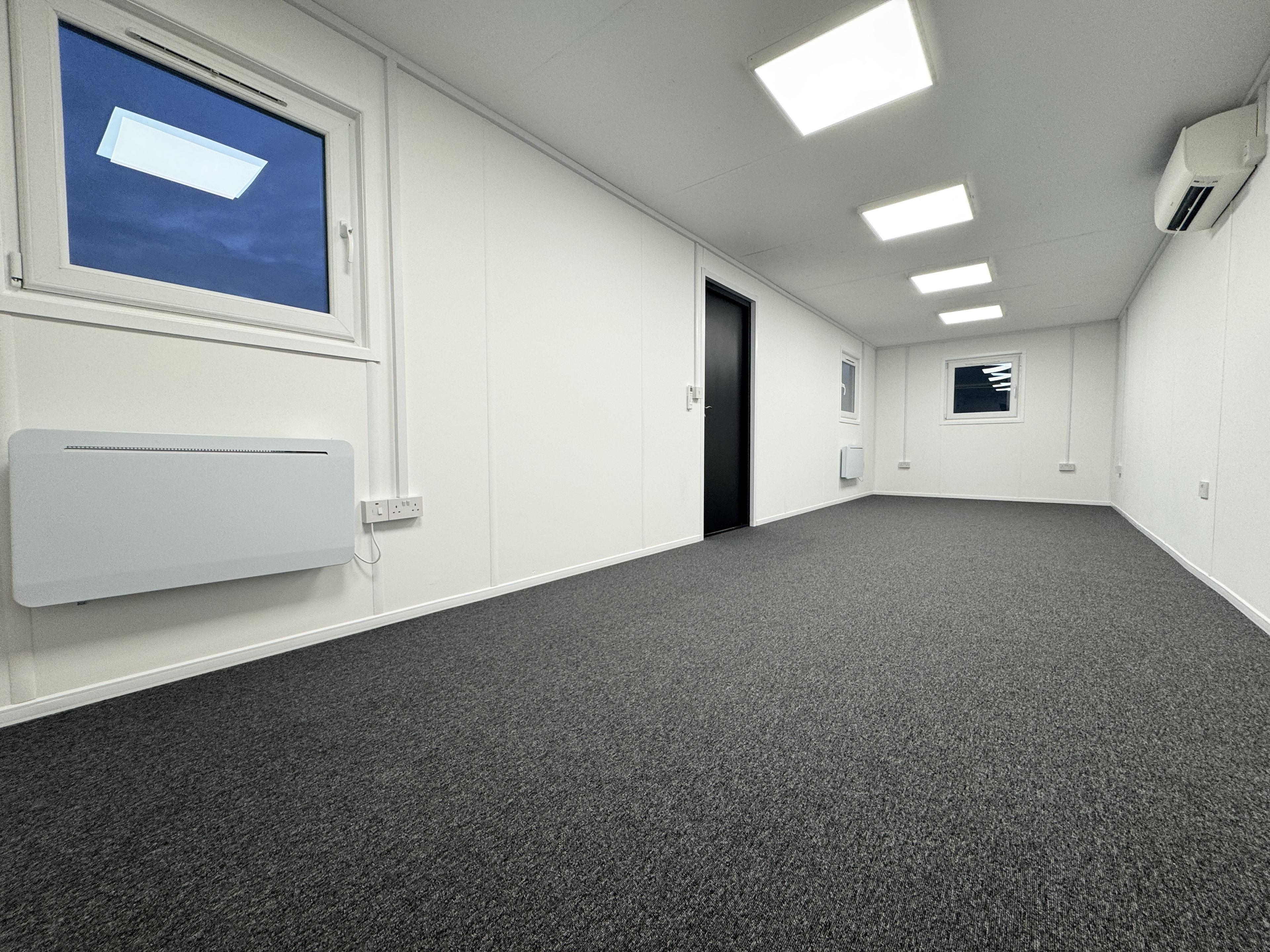 Here's a fantastic 32x10ft office unit that we recently completed for one of our customers. It had 2 private offices, one to each end, & a large communal office space to the middle!
