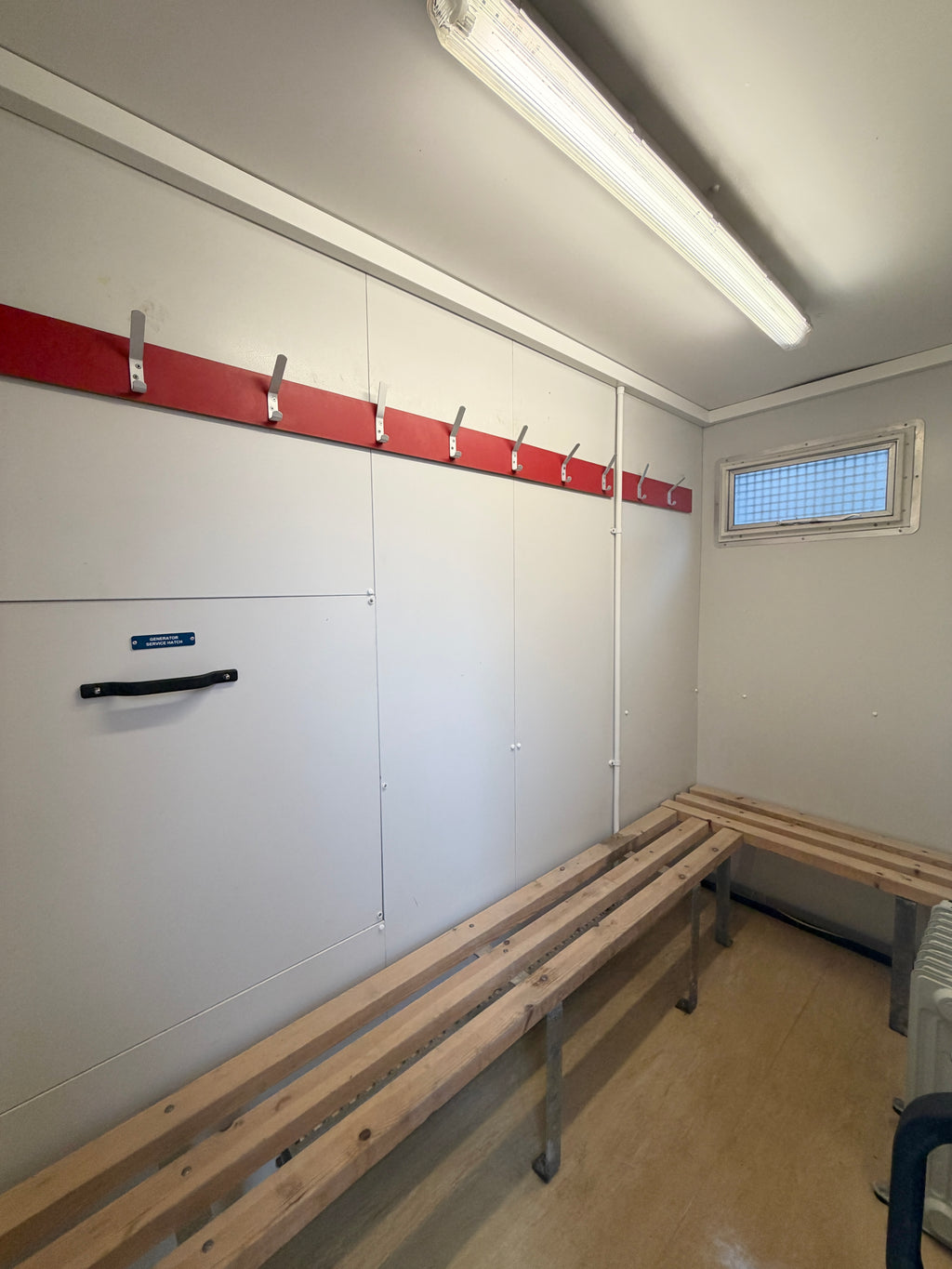 - Hanging pegs & bench seating