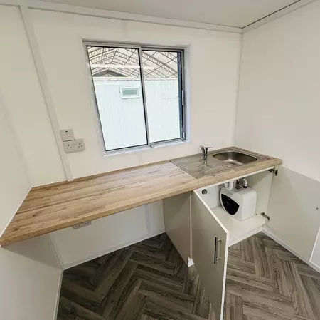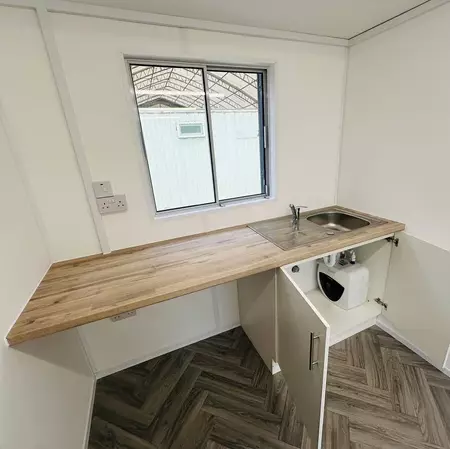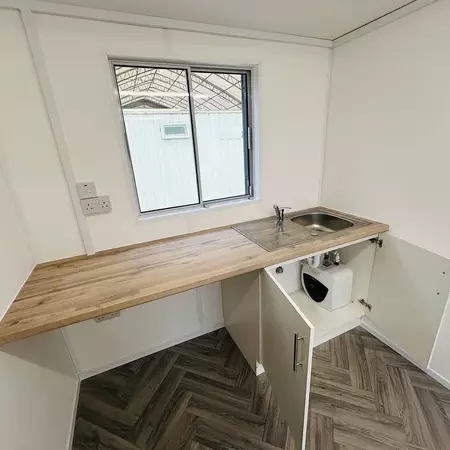 Installation of new fully functioning Kitchenettes with hot water facilities, basin, work top surface & storage