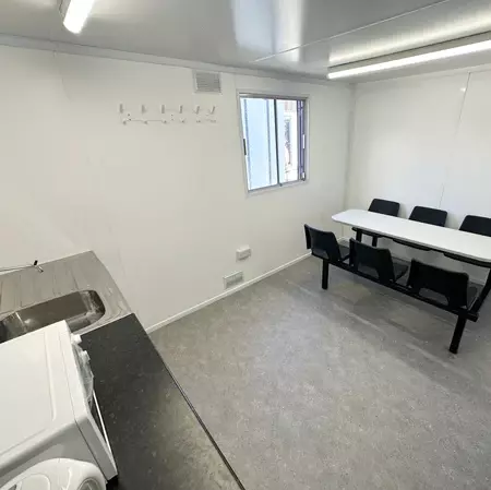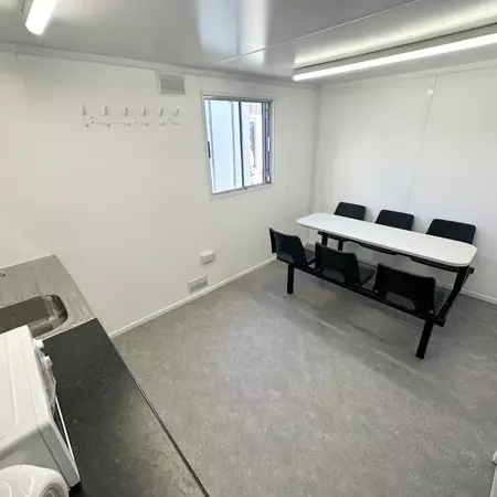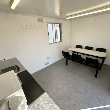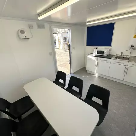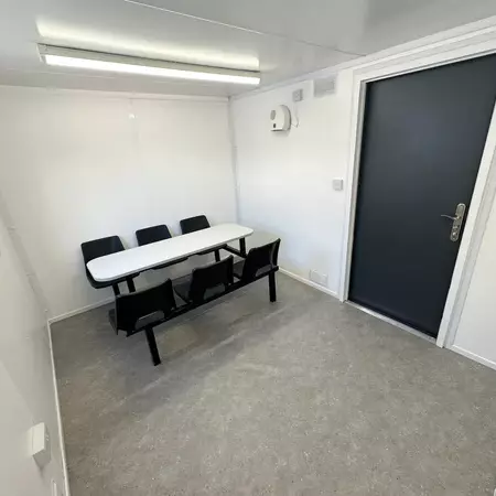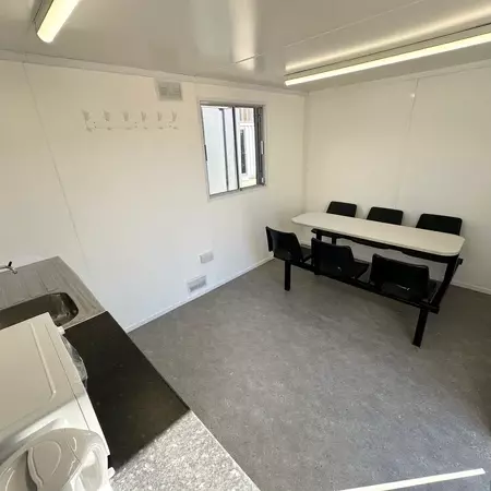 This anti-vandal 24x9ft static welfare unit has been refurbished by our team & is a very clean example. It is a fully self contained unit with toilet, generator, canteen space & seperate office.