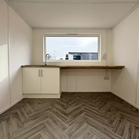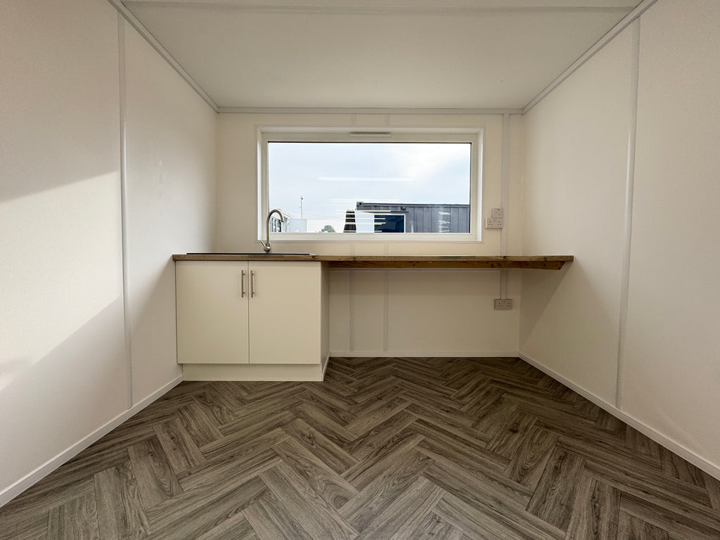 Installation of new fully functioning Kitchenettes with hot water facilities, basin, work top surface & storage