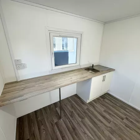 Installation of new fully functioning Kitchenettes with hot water facilities, basin, work top surface & storage