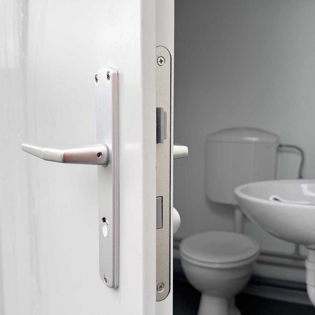 Cabin Depot presents this Brand New 10x8 ft Containex Portable 4 Bay Toilet block with 4 seperate lockable doors (internal locking with door closers) & 4 individual toilet pods/cubicles/spaces.